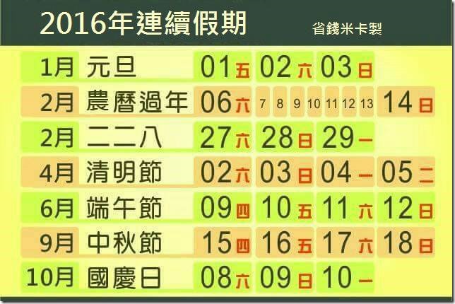 【假期】2016台灣連續假期,安排旅行參考